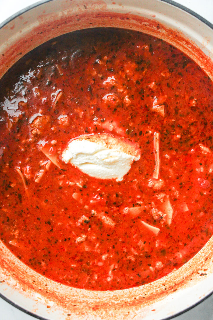If you love lasagna but don’t love the time, dishes or commitment that comes with it, this One Pot Lasagna Soup is about to be your new go-to. It has everything you want from classic lasagna: the rich tomato base, tender noodles, filling protein, and creamy ricotta, but in a weeknight-friendly format. It all comes together in a single pot, which means less cleanup and more time to enjoy a warm, comforting bowl of something that tastes like it simmered all day.
